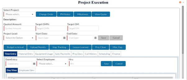 You can view all the employees working on the project and the actual working hours accrued as the project progresses compared to the planned project hours. You can also view the material usage, equipment usage, payments done, project documents, call history, work schedule, and the overall financial details.